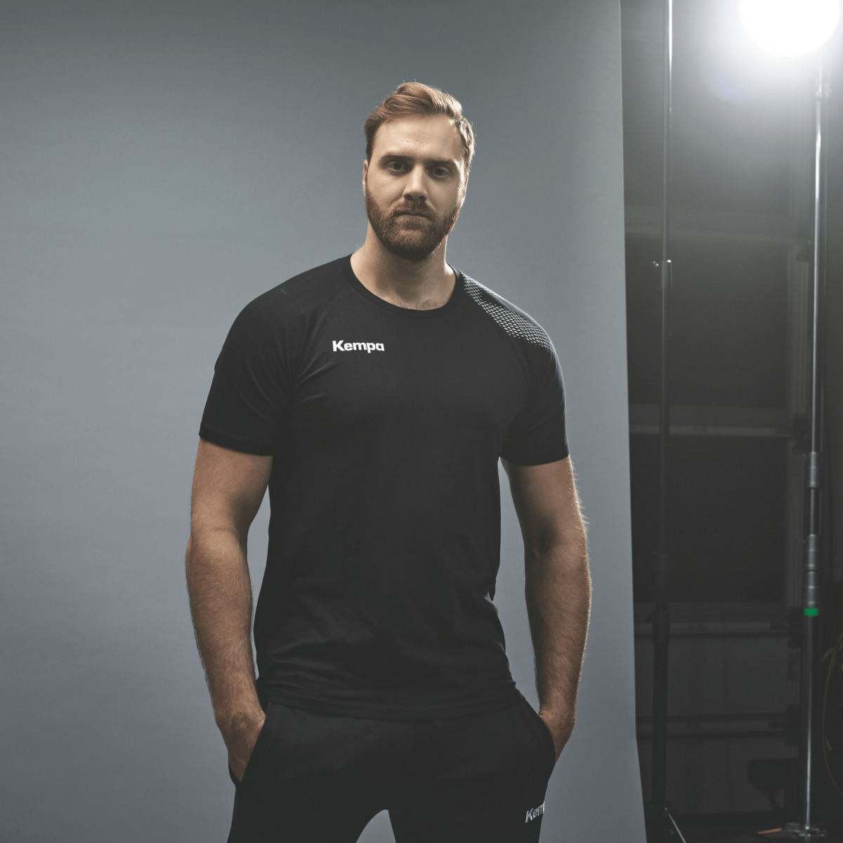 - Rundhalsausschnitt mit schwarzem Kempa-Nackenband